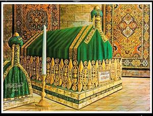 Makam Muhammad di Medina, di sampingnya Abu Bakar, kalifah pertama
