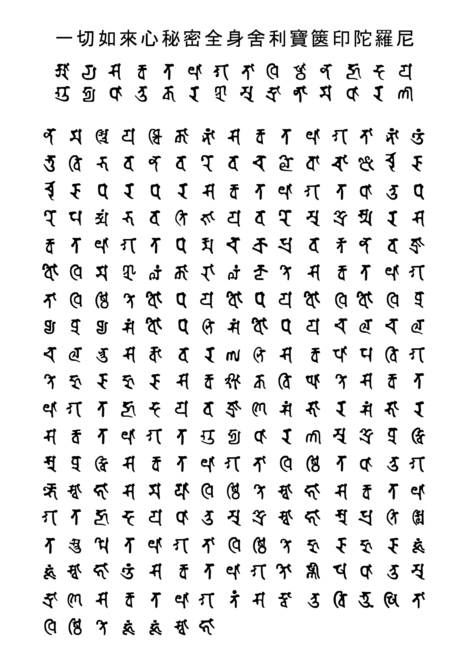 【空心字版】悉昙梵文一切如来心秘密全身舍利宝箧印陀罗尼