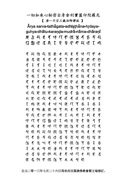 【 经典版 】悉昙梵文一切如来心秘密全身舍利宝箧印陀罗尼(1)