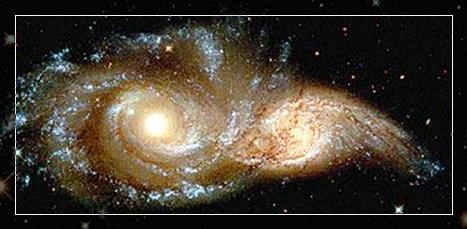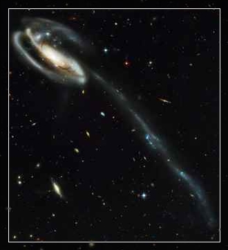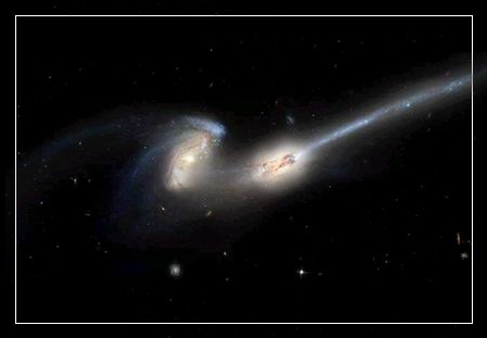 编号是NGC 4676的星系,距离我们约有三亿光年。(江河形)