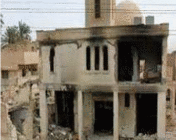 Gereja St George di desa Elmarinab, dihancurkan dan dibakar massa Muslim