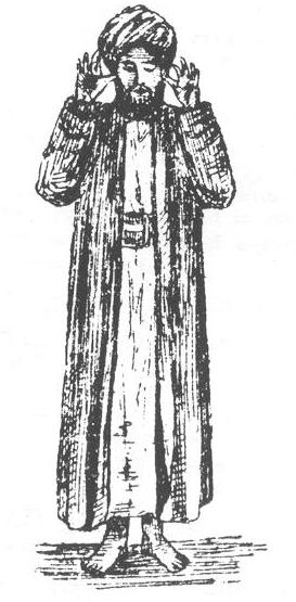 The turban, which consists of a stiff round cap, occasionally rising to a considerable height, and a long piece of muslin, often as much as twenty-four yards in length, wound round it, is amongst all Muhammadan nations a sign of authority and honour, and it is held to be disrespectful to stand in the presence of a person of respectability, or to worship God, with the head uncovered. Shaikhs and persons of religious pretensions wear green turbans. The Coptic Christians in Egypt wear a blue turban, having been compelled to do so by an edict published in A.D. 1301. In