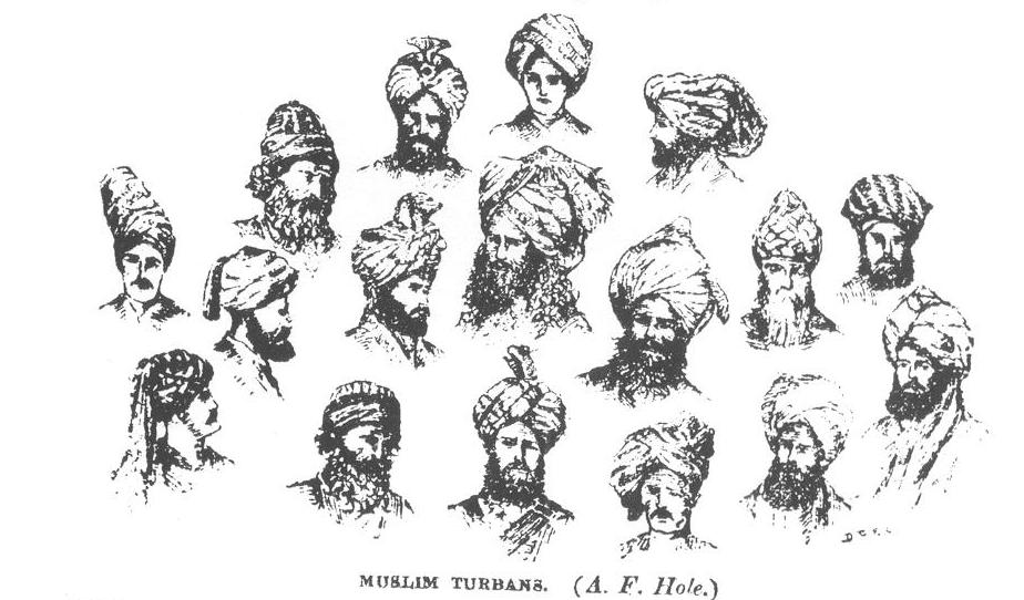 The varieties of turban worn in the East are very great, and their peculiarities are best illustrated by the accompanying drawing, giving seventeen different styles of tying up the turban. In books written upon the subject in Eastern languages, it is said that there are not fewer than a thousand methods of binding the turban. It is in the peculiar method of tying on, and off arranging this head-dress, that not only tribal and religious distinctions are seen, but even peculiarities of disposition. The humility or pride, the virtue or vice, as well as the social standing of the individual, is supposed to be indicated in his method of binding the turban upon his head. And travellers in the East can at once distinguish the different races by their turbans. [DRESS.]