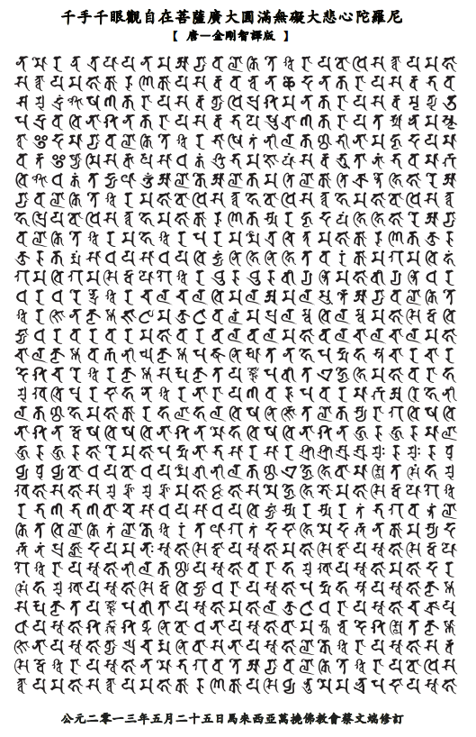 千手千眼觀自在菩薩廣大圓滿無礙大悲心陀羅尼 【 唐-金剛智譯版 】