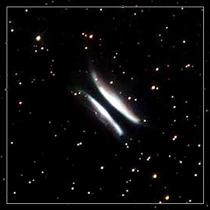 编号是NGC 4676的星系,距离我们约有三亿光年。(江河形)